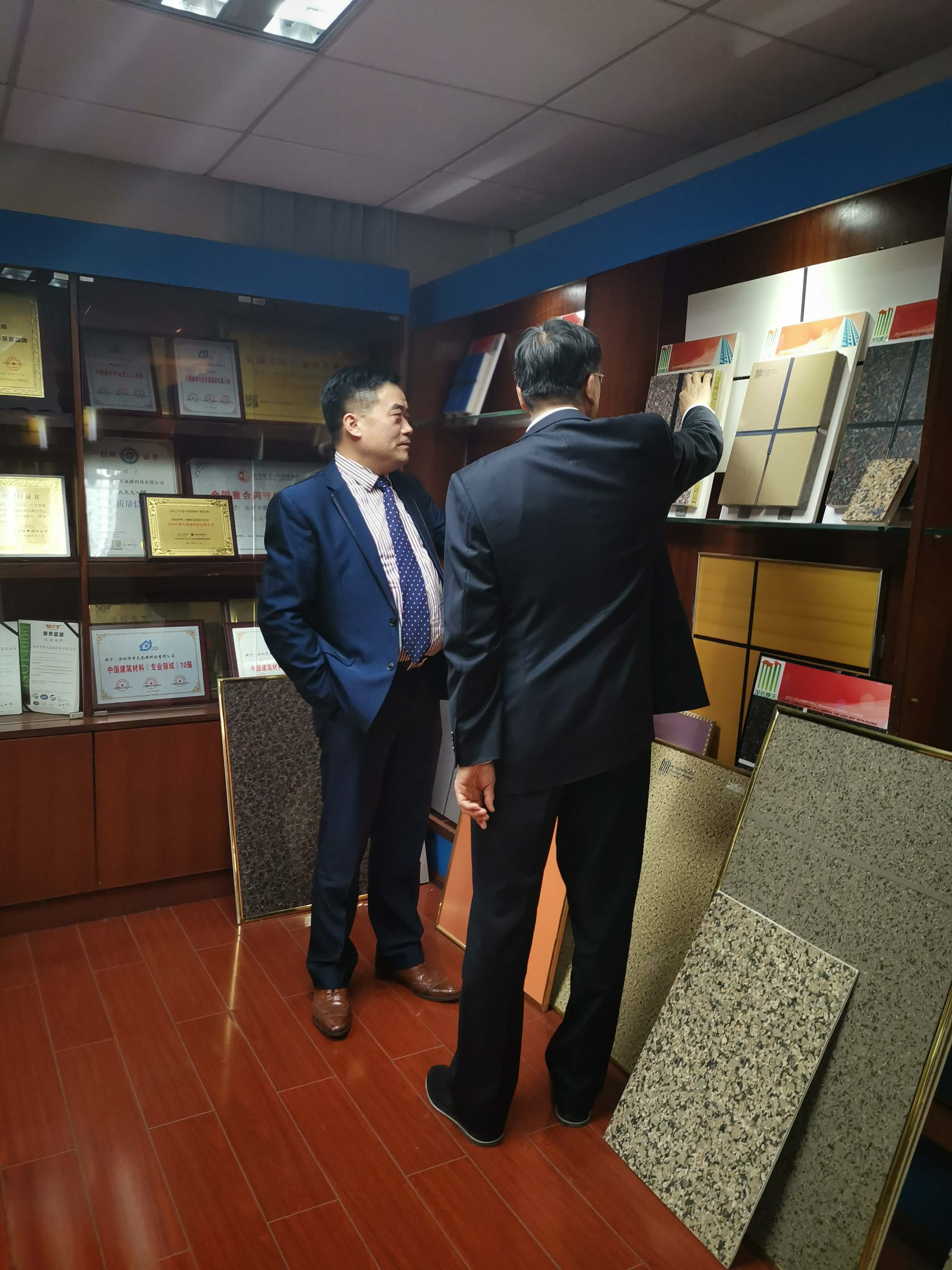 期間,深圳摩天總經(jīng)理鄭力華先生介紹了摩天的發(fā)展歷程、產(chǎn)品體系、規(guī)劃布局等,向韓秘書長展示深圳摩天的企業(yè)文化、創(chuàng)新實力和發(fā)展成就,韓秘書長在聽完總經(jīng)理鄭力華的介紹后,十分認可深圳摩天在行業(yè)領先的雄厚實力,對摩天多年來在外墻涂料、建筑外墻保溫裝飾一體板行業(yè)做出的貢獻表示贊賞。